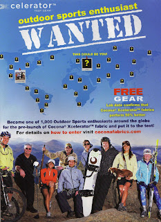 Cocona Fabrics is running a full page add in Backpacker Magazine looking for outdoor enthusiasts to test a new fabric called Xcelerator. They claim Xcelerator Fabrics perform 50% better than other similar fabrics, and are looking for 1000 testers who will receive free gear for testing. If you are interested in applying to become a tester you can go to the Cocona website to register. The website says: