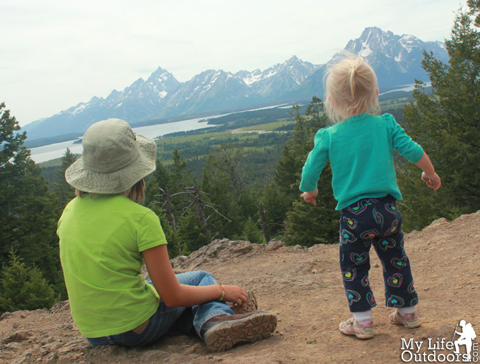 | My two daughters looking out toward Jackson Lake and the Grand Tetons |
