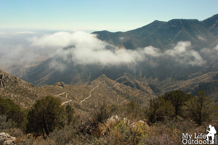 As far as the wind it wasn't bad this trip. The Guads are notorious for their high winds (with 100 mph gusts being quite common). I have hiked in the guads where I was literally blown off the trail or smacked in the face by my tent all night due to high winds. But the wind was quite calm this trip which allowed the fog to linger and play the way it did.