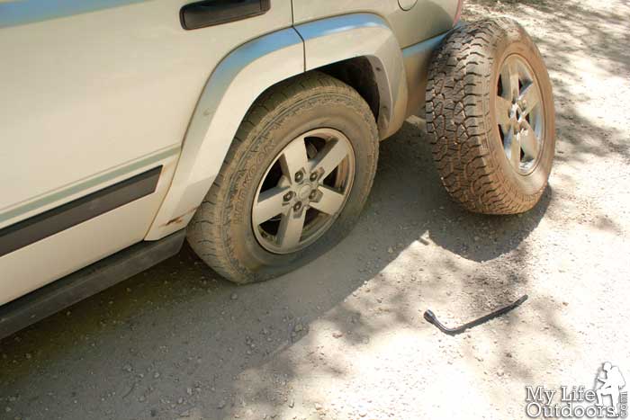 | A Flat tire in the backcountry, no big deal if you have a spare. |